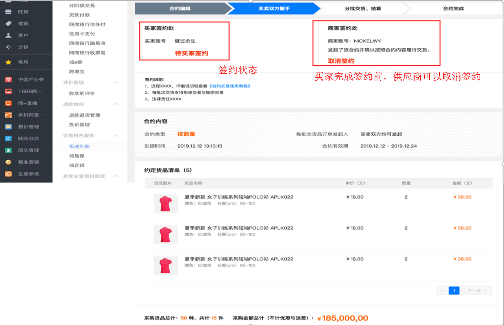 第三步,買(mǎi)家簽約后,履行合約頁(yè)面,電腦端商家后臺(tái);