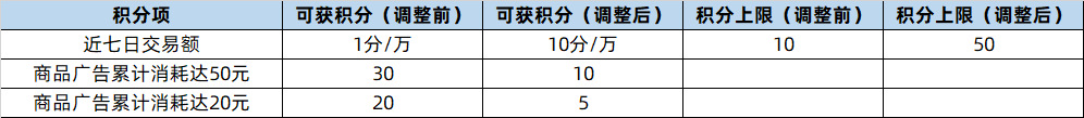 注:調(diào)整之后商家獲取積分的難度會小于調(diào)整之前。