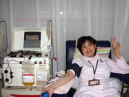 ????? 血液部采血室是一個(gè)團(tuán)結(jié)友愛(ài)的集體,看到臨床血小板緊缺后,從采血室主管到單采的護(hù)士們都積極行動(dòng)起來(lái),踴躍捐獻(xiàn)血小板。6月15日下午,從“人道之光,功德之舉”玉佛寺法師無(wú)償獻(xiàn)血活動(dòng)現(xiàn)場(chǎng)剛剛歸來(lái)的采血室葉艷副主任就走進(jìn)單采室捐獻(xiàn)了血小板,單采護(hù)士水淑倩也同時(shí)捐獻(xiàn)了血小板,而王偉群副主任更是在周日的加班結(jié)束后捐獻(xiàn)了單采血小板。最近采血室的多位員工都積極行動(dòng)著,在這之前科室主管劉年珍,員工李吟、肖月芳、孫培志、馬海韻、范晶晶、孫曉芳、姚洋等參加了成分獻(xiàn)血。他們的行動(dòng)必定會(huì)影響更多地員工參加成分獻(xiàn)血。