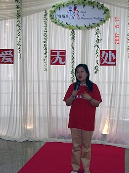 ????? 血液中心二樓休息大廳被布置成一個(gè)婚禮殿堂,三十多對(duì)新人在這里舉行一個(gè)聯(lián)誼會(huì)。中心朱永明主任代表上海市血液中心和市血管辦為活動(dòng)致詞,并表達(dá)了對(duì)愛侶們良好的祝愿以及對(duì)活動(dòng)提供支持的公司及媒體朋友衷心的感謝。