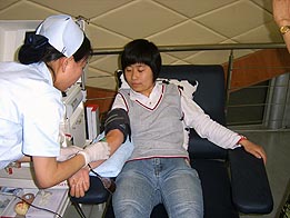 ????? 2007年6月14日,筆者早早的來到位于上海西南面的梅隴獻(xiàn)血屋。梅隴獻(xiàn)血屋是繼成都路獻(xiàn)血屋、六百流動車采血點(diǎn)以外,中心開出的第三個能做成份獻(xiàn)血的地方。今天是一個特殊的日子――世界獻(xiàn)血者日。雖然天公不作美,外面下著大雨,路上也沒什么行人,但是一進(jìn)門只見人頭攢動,熱鬧非凡。