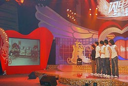 ??????? 兄弟聯(lián)成員唱著成分獻(xiàn)血宣傳主題曲《想和你一起》和用他們的血小板所幫助的4位白血病患兒來到了舞臺上。血液中心和兒童醫(yī)學(xué)中心這次破例安排捐贈者與受捐贈者見面,用真實事例向大家展示了愛的力量。在閃電星感動的舞臺上,兄弟聯(lián)的4位成員為了吸引更多的人關(guān)注成分獻(xiàn)血、他們決心來一場愛心大挑戰(zhàn)。他們仿佛就是超人,演繹著《丹丁之劍》、《穿心術(shù)》等西方神話故事,場面之驚險,讓現(xiàn)場的觀眾真實為他們捏了把汗。難道捐獻(xiàn)過成分血就會變成魔法師?在他們的貼身物品大拍賣時,他們又玩起了《大變活人》,現(xiàn)場兄弟聯(lián)四人變出了神秘嘉賓――共同參與這次推廣活動的動感101主持人隋蕾。