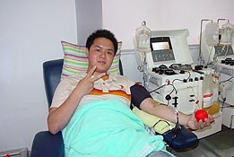 ??????? 今年6月14日是第四個世界獻(xiàn)血者日,許許多多愛心人士都以無償獻(xiàn)血來紀(jì)念自己的節(jié)日。血庫員工樓聿飛夜班下班后立即來到單采室,成為了今天血液中心接待的第一位成分獻(xiàn)血者。樓聿飛說:“我身體強(qiáng)壯得很,獻(xiàn)一袋血小板算不了什么,但是對于病人來說這一袋血小板可能就是救命的,我覺得很值得?!?/p>