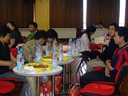 ??????? 會(huì)上,上海市血液中心鄒崢嶸副主任向在座的各位獻(xiàn)血者們致以親切的問候,并感謝他們長(zhǎng)久以來對(duì)無償獻(xiàn)血事業(yè)的支持。隨后,鄒主任與血液部的張雄民副部長(zhǎng)一同為新近會(huì)員頒發(fā)了俱樂部會(huì)員證。為了讓會(huì)員們了解自己的權(quán)力、義務(wù),社會(huì)事務(wù)科科長(zhǎng)陸瑤向會(huì)員們宣讀了Rh陰性俱樂部章程征求稿。之后的“踩報(bào)紙”團(tuán)隊(duì)協(xié)作游戲更是把會(huì)場(chǎng)氣氛推向了高潮。最后,血型檢測(cè)中心的劉曦為大家講解了Rh陰性血液的相關(guān)知識(shí),讓會(huì)員們對(duì)自己的稀有血型有了更深的了解。