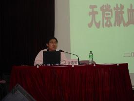????? 講座由建峰學(xué)院團(tuán)委書記、學(xué)生處處長張?jiān)嵗蠋熤鞒?,分為四個(gè)流程。首先,同學(xué)們觀看了無償獻(xiàn)血宣傳片,了解了一些血液生理常識(shí)和獻(xiàn)血法知識(shí)。其次,張嘉卿用最新修改完成的PPT演示文稿為同學(xué)們介紹了國內(nèi)外獻(xiàn)血現(xiàn)狀、輸血?dú)v史、獻(xiàn)血前中后注意事項(xiàng)、采供血流程等無償獻(xiàn)血相關(guān)知識(shí),并且以自己工作中、志愿者工作中和獻(xiàn)血經(jīng)歷中遇到的眾多事例動(dòng)員同學(xué),也當(dāng)場為同學(xué)們答疑解惑。接著,“2007年度感動(dòng)校園人物”倪曉同學(xué)以一位獻(xiàn)血者和學(xué)生干部的雙重身份向同學(xué)們提出了“捐一袋熱血,獻(xiàn)一份愛心”的倡議。最后,同學(xué)們紛紛踴躍地填寫預(yù)報(bào)名表,積極加入到無償獻(xiàn)血的隊(duì)伍中來?! ?br>????? 歷時(shí)一個(gè)半小時(shí)的講座在同學(xué)們與主講者的個(gè)別交流中圓滿結(jié)束,學(xué)校負(fù)責(zé)老師也做出積極的反饋:“有了這樣專業(yè)的講座后,同學(xué)的思想顧慮小了很多,學(xué)校的動(dòng)員工作也更加容易開展了,希望今后多與血液中心合作開展宣傳活動(dòng)。”