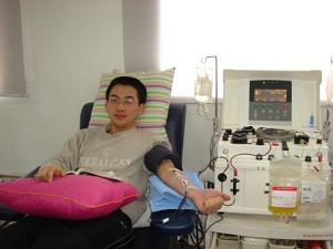 ????? 同一天,中心質(zhì)量法規(guī)部的章舜瑋也前來獻(xiàn)單采。此時(shí)已臨近中午,為保證血小板的質(zhì)量,章舜瑋沒有吃午飯,并放棄了午休。這也是章舜瑋第二次參加成分獻(xiàn)血了。獻(xiàn)血一結(jié)束,章舜瑋就默默地回到自己的工作崗位,投入到忙碌的工作中。