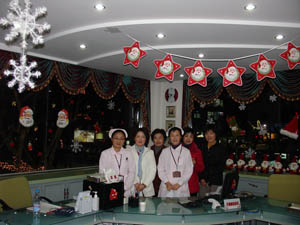 ??????? 七點鐘,采血室的四位主管來到獻血屋慰問醫(yī)護人員,據(jù)她們透露,這里的護士張影仁前幾日患帶狀皰疹曾去醫(yī)院就診,晚上疼痛難忍無法入眠,為了不影響白天工作,這些日子她便服用安眠藥入睡,白天堅持上班,平安夜她比平時延遲五個小時下班。據(jù)了解,不僅是醫(yī)護人員盡心盡職,獻血車司機們也很辛苦,陳文祥妻子身患重病,化療期間需要丈夫悉心照料,而陳師傅卻依然堅守崗位并且在該日上午7點就趕到位于虹橋路的血液中心,準備獻血車物品保證人民廣場流動獻血車上午九點準時運作。司機馮為民曾多次將為圣誕節(jié)活動而采購的大件物品搬運到各獻血屋和獻血車,經(jīng)常搬得滿頭大汗卻毫無怨言。