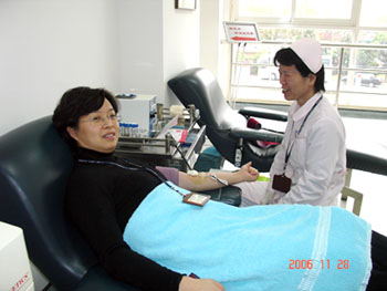 ??????? 此外,許多愛(ài)心企業(yè)也紛紛伸出了援助之手。上海盈媒廣告有限公司、上海九州通醫(yī)藥有限公司、新開(kāi)元酒店盧灣分店的近百名員工自愿獻(xiàn)血。寶山鋼鐵股份有限公司在完成全年獻(xiàn)血目標(biāo)的基礎(chǔ)上,今昨兩天正啟用無(wú)償獻(xiàn)血應(yīng)急隊(duì)伍,估計(jì)有400人份的A型、O型血將入庫(kù),為臨床輸血病人送去愛(ài)的甘露。