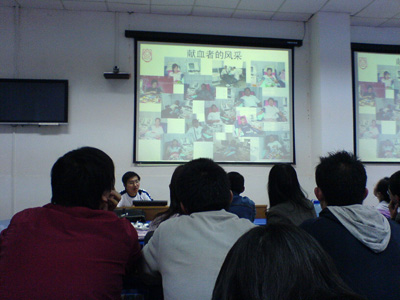 今天,復(fù)旦大學(xué)網(wǎng)絡(luò)學(xué)院有幸請來了血液中心社會事務(wù)科的張嘉卿老師來為我們06級金融專業(yè)的同學(xué)講述成分獻血的相關(guān)內(nèi)容以及無償獻血的基本常識。我們還邀來了曾經(jīng)有8次獻血經(jīng)歷的06級國貿(mào)的班主任王老師,以及我們的班主任李穎男老師。為了這次活動,我們在前兩周就做了充分的準(zhǔn)備。