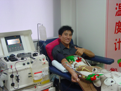 臧一平先生長期在南京西路獻(xiàn)血點(diǎn)獻(xiàn)血,多次捐獻(xiàn)全血400ml,累計(jì)至目前獻(xiàn)血已經(jīng)超過4000ml。2006年10月13日捐獻(xiàn)單采血小板,臧先生說:“自我感覺獻(xiàn)血后身體越來越好。獻(xiàn)血救人,感覺是做一件好事?!?/p>