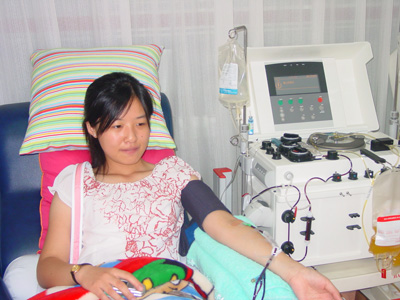 ??????? 2006年9月20日下午,上海交通大學(xué)05級(jí)針灸推拿英文班的傅昕、丁燕萍、陳含三位女生如約而至來到上海市血液中心的采血室。自今年6月7日首次成分獻(xiàn)血,每個(gè)月成分獻(xiàn)血間隔期滿,她們總會(huì)來到這里,這已經(jīng)是她們第四次捐獻(xiàn)單采血小板了。