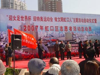 ????? 2007年3月11日,“迎女足世界杯,迎特奧運動會,做文明虹口人”的主題活動暨“2007年虹口區(qū)志愿者活動總動員”在四川北路綠地拉開帷幕。