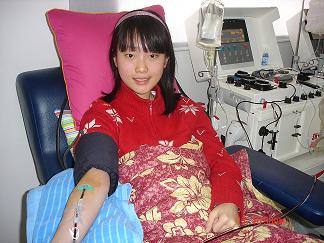 ????? 3月17日,星期六,實(shí)習(xí)護(hù)士張榮蓉走進(jìn)了中心的單采室。雖然這是她第一次做單采血小板,但是剛滿20歲的小張已經(jīng)有了兩次捐獻(xiàn)全血的體驗(yàn)了,現(xiàn)在在中心固定血小板捐獻(xiàn)者樂寶菊的鼓勵下小張又加入了單采血小板的隊(duì)伍。在獻(xiàn)血時張榮蓉說:“我在醫(yī)院做實(shí)習(xí)護(hù)士,看到那么多病人需要用血,心里很著急。我知道,捐一次血就可以救幾個人,我很健康,何樂而不為呢!”