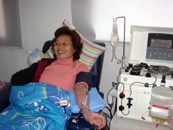 ????? 農(nóng)歷豬年已至,獻(xiàn)血者們在歡天喜地地慶祝中國年的時候不忘來到血液中心捐獻(xiàn)熱血。從大年初二至初七年中心單采室的工作人員共接待了16位單采獻(xiàn)血者。其中有來自上海大學(xué)的研究生宋育華,他已經(jīng)27次捐獻(xiàn)血小板了,他把捐血作為獻(xiàn)血六周年紀(jì)念日的禮物。有第24次捐獻(xiàn)血小板的樂寶菊。還有查海藍(lán)、丁燕萍、諸文君等許多獻(xiàn)血者。年初七,來自上海市紅十字造血干細(xì)胞捐贈志愿者俱樂部的志愿者借血液中心舉行常規(guī)培訓(xùn),培訓(xùn)后有5位參加培訓(xùn)的志愿者也參加了血小板的捐獻(xiàn)。這些單采獻(xiàn)血者的濃濃愛心讓我們回味,也讓我們尊敬。