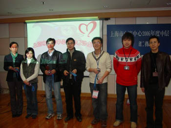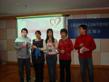 ????? 2007年1月12日中午,上海市血液中心無償獻(xiàn)血志愿者宣傳服務(wù)隊(duì)中心組成員轉(zhuǎn)正儀式在血液中心多功能廳順利舉行,出席儀式的有服務(wù)隊(duì)負(fù)責(zé)人、執(zhí)行理事組成員、服務(wù)部干事及參加轉(zhuǎn)正的部分志愿者共44人。