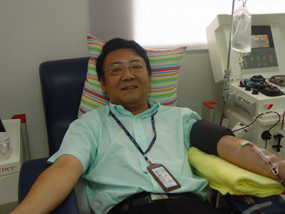 ??????? 2006年9月25日上午,來(lái)自于國(guó)家電力華東公司的高級(jí)工程師龔曉平先生在上海市血液中心參加了第30次成分獻(xiàn)血。