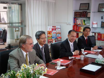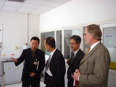 ????? 2007年2月14日,Tecan(帝肯)集團(tuán)副總裁兼Tecan美國總裁Carl Severinghaus, Tecan 亞太區(qū)總經(jīng)理Eun-Uk Ahn, Tecan中國首席代表Mark Wang等一行四人對上海市血液中心進(jìn)行工作拜訪,與中心朱永明主任進(jìn)行了工作會(huì)談。帝肯公司感謝上海市血液中心長期以來對Tecan的認(rèn)可和支持;并如何更好地為上海市血液中心服務(wù),探討如何與上海市血液中心進(jìn)行進(jìn)一步的各種形式的合作。血液部張晰部長會(huì)談時(shí)作陪。
