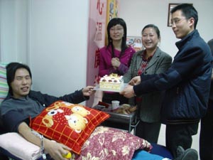 ????? 2月8日,是上海市血液中心設備科王亮同志的生日。王亮上午照常上班,中午時分他默默地走進采血室,準備捐獻血小板。血液部領導得知消息后,立即外出買了生日蛋糕為王亮同志在單采室慶祝生日。這是王亮第五次參加成分獻血,王亮表示:“這是五次單采中最有紀念意義的一次?!?/p>