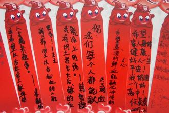 ??????? 在整個講解過程,同學(xué)們認(rèn)真聽講,對無償獻(xiàn)血表現(xiàn)出了濃厚的興趣。在收回的調(diào)查問卷中,對于“講座之后對獻(xiàn)血是否害怕”,“是否認(rèn)為醫(yī)院里的一些病人如果沒有血液救治會非常危險”的調(diào)查中所有的同學(xué)都選擇了“不害怕”和“是”對于“長大后是否會積極參加無償獻(xiàn)血”的調(diào)查中,除了一位同學(xué)選了“沒想好”,其余同學(xué)都選擇了“會”。在許愿條中,有十多位同學(xué)表示“長大后希望能參加無償獻(xiàn)血救助病人、希望獻(xiàn)出的血能派上用場”;更有一位高中生寫下了“希望溫暖的鮮血能夠融化冰冷的人的心”的感人話語。最后,同學(xué)們也給我們的宣傳提出了一些建議:希望宣傳的次數(shù)更多、宣傳面更廣;希望多多進(jìn)入中小學(xué)給同學(xué)們講授無償獻(xiàn)血知識。
